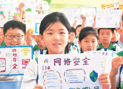 河北省邯鄲市永年區(qū)洺州小學(xué)的孩子們展示網(wǎng)絡(luò)安全手抄報(bào)。